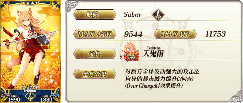 | 自身的Buster指令卡性能提升15%&NP获得量提升15% | |||