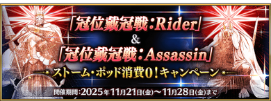 | 「冠位戴冠戦:Rider」&「冠位戴冠战:Assassin」ストーム・ポッド消費0!キャンペーン | |