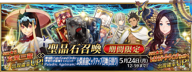 | 「劇場版 Fate/Grand Order -神聖円卓領域キャメロット- Paladin; Agateram」公開直前ピックアップ召喚 | |