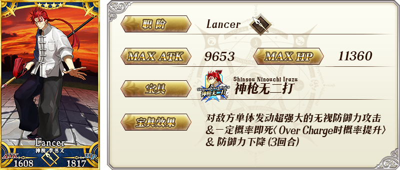 | 自身暴击星发生率提升4%&暴击威力提升4%&宝具威力提升4% | |||