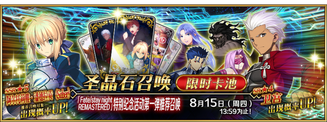 「Fate/stay night REMASTERED」特别纪念活动 第一弹推荐召唤
