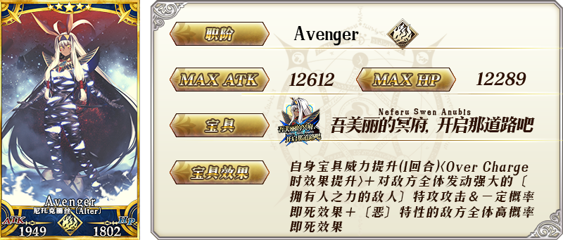 如需了解★5(SSR)尼托克丽丝〔Alter〕的宝具动画,您也可以查阅尼托克丽丝〔Alter〕/宝具动画页面。
