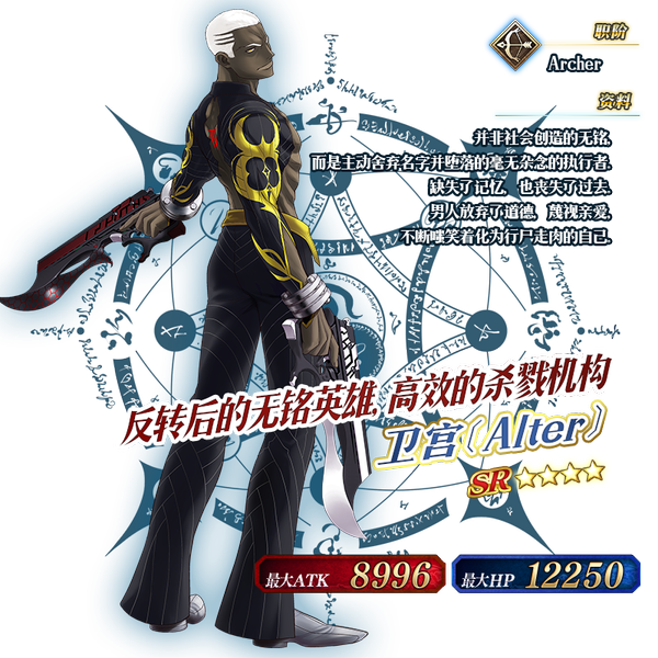 如需了解★4(SR)卫宫〔Alter〕的宝具动画,您也可以查阅卫宫〔Alter〕/宝具动画页面。