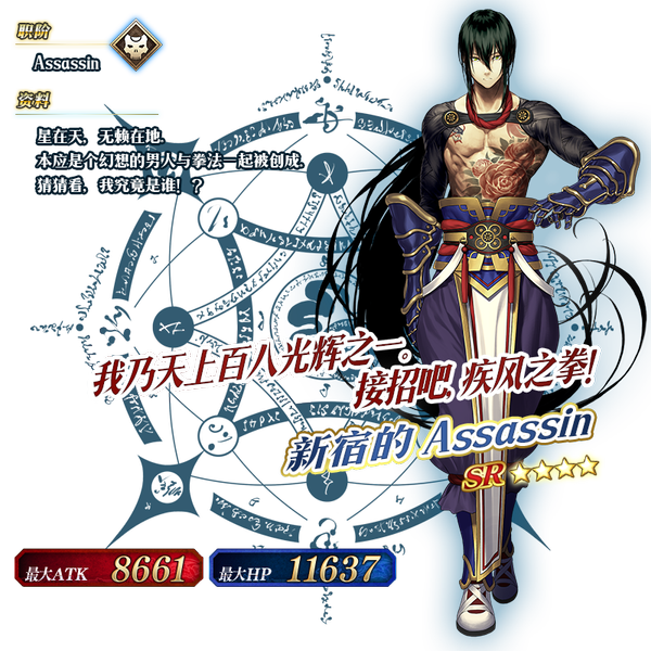 如需了解★4(SR)燕青(新宿的Assassin)的宝具动画,您也可以查阅新宿的Assassin/宝具动画页面。