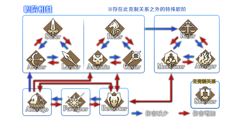 同时,「Foreigner」职阶自身也呈现互克关系,对「Foreigner」造成的伤害增加,受到「Foreigner」的伤害也增加。