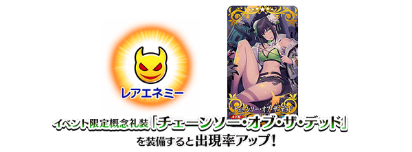 通过装备活动任务奖励的限时概念礼装「★5(SSR)死亡链锯」可将关卡内低概率出现的追加敌方出现率提升15%。