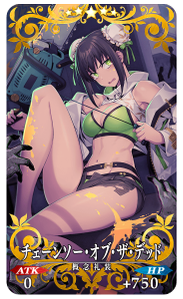 装备活动限定概念礼装「★5(SSR)死亡链锯」后,追加敌方的出现率会有所提升,每张提升15%。在共计装备5张时,出现率可达到100%。