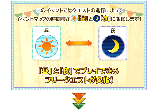 通过装备于圣晶石召唤中概率提升的活动限时概念礼装「★5(SSR)甜蜜湖泊」「★5(SSR)无瑕之蓝」「★4(SR)快乐☆兜风」「★4(SR)攀登对战」「★3(R)恐怖礼宾员」「★3(R)死党烧烤」可分别提升本次活动专用道具「迷你链锯」「刚采摘的蔬菜」「极干燥的柴火」的掉落获得数量。