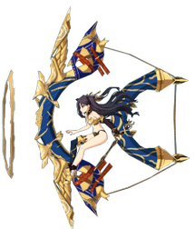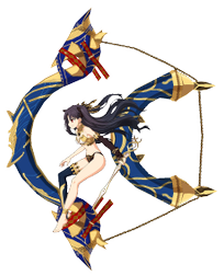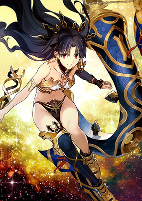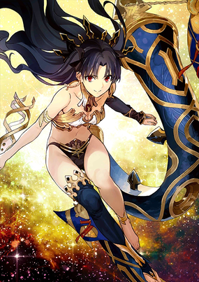 女神伊什塔尔应召唤前来。你要好好敬仰我这司掌金星的美之女神,以及同样司掌丰收、战斗、破坏的——……哈?好久不见?你在说什么呢,我压根不认识你这样的——人……但是……算了,作为一个人类来说你还不赖。狂妄自大的部分也是。