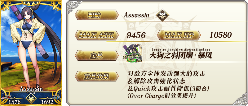 自身的Quick指令卡性能提升8%&Arts指令卡性能提升8%&暴击威力提升5%