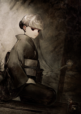 初次见面,小女子是驹。哎呀? 御主大人看上去有些惊讶,该不会是,利休大人没有提及驹的事?忘记了……?原来如此,利休大人,驹稍后有话要说,还请您奉陪。