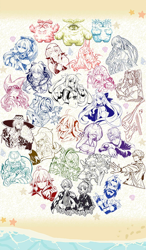 | 1. 科尔努诺斯 ・ 2. 巴御前(Saber) ・ 3. 诺克娜蕾·雅兰杜 ・ 4. 梅柳齐娜(Ruler) ・ 5. 雨之魔女梣 ・ 6. 凯特·库·米可科尔 ・ 7. 哈贝特洛特 ・ 8. 克洛伊·冯·爱因兹贝伦(Avenger) ・ 9. 阿尔托莉雅·卡斯特(Berserker) ・ 10. 曲亭马琴 ・ 11. 克莱恩小姐 ・ 12. UDK-巴格斯特 ・ 13. 藤丸立香(女性) ・ 14. 藤丸立香(男性) ・ 15. 玛修·基列莱特 ・ 16. 兰斯洛特(Saber) ・ 17. 崔斯坦 ・ 18. 阿斯克勒庇俄斯 ・ 19. 贞德〔Alter〕(Berserker) ・ 20. 呼延灼 ・ 21. 铃鹿御前〔暑假〕 ・ 22. 高文 ・ 23. 亨利·杰基尔&海德 ・ 24. 莫德雷德 ・ 25. 爱德华·蒂奇 | ||||
