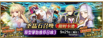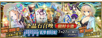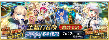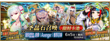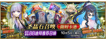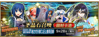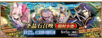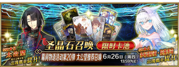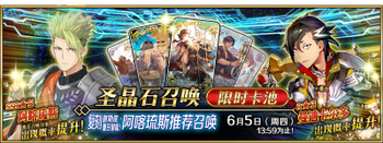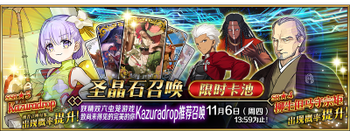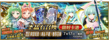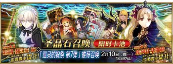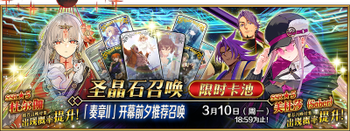 | 国服已结束卡池 | 开始时间 ~ 结束时间 | 推荐召唤从者 (期间限定从者带有红色边框;剧情限定从者带有蓝色边框) |