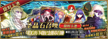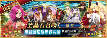 | 国服已结束卡池 | 开始时间 ~ 结束时间 | 推荐召唤从者 (期间限定从者带有红色边框;剧情限定从者带有蓝色边框) |