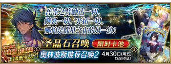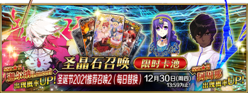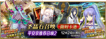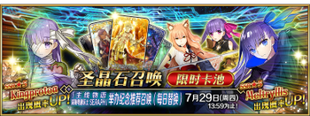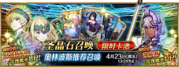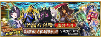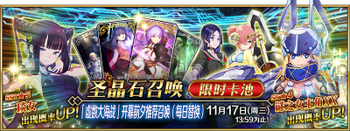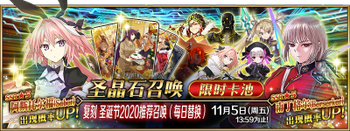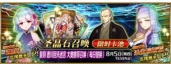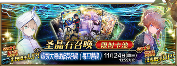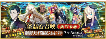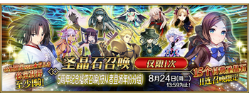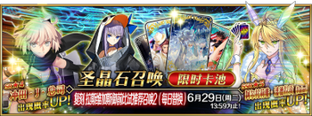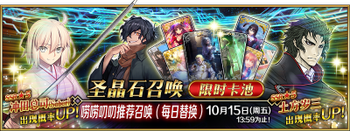 | 国服已结束卡池 | 开始时间 ~ 结束时间 | 推荐召唤从者 (期间限定从者带有红色边框;剧情限定从者带有蓝色边框) |
