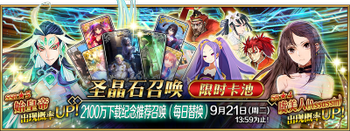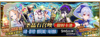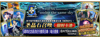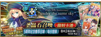 无 | ※5周年纪念英灵纪行礼装推荐召唤,分六组进行日替召唤 | ||||||||