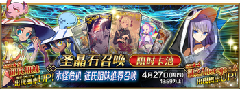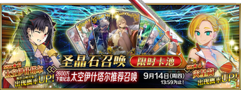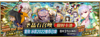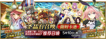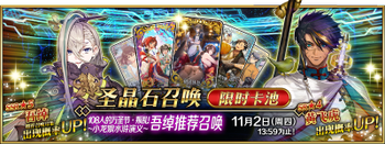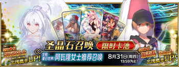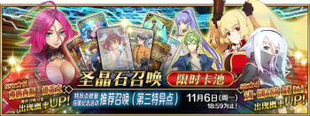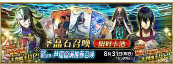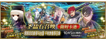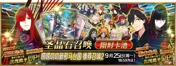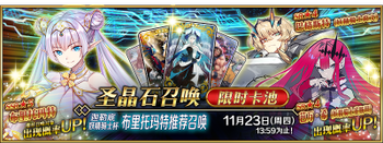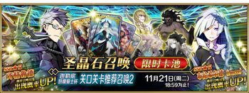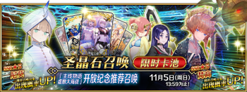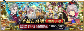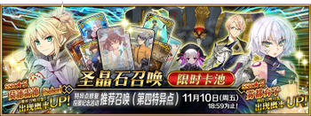 | 国服已结束卡池 | 开始时间 ~ 结束时间 | 推荐召唤从者 (期间限定从者带有红色边框;剧情限定从者带有蓝色边框) |