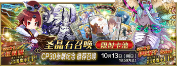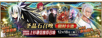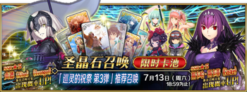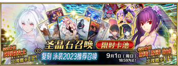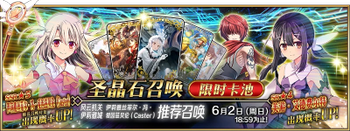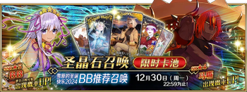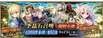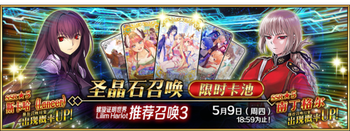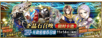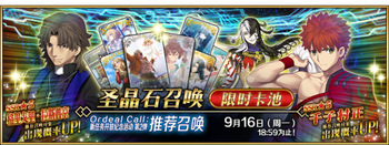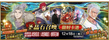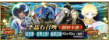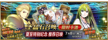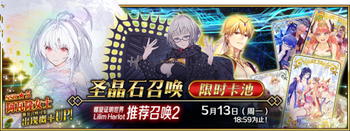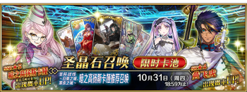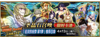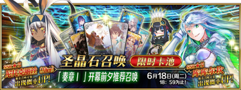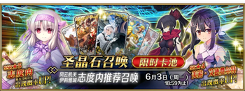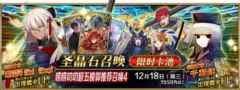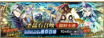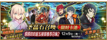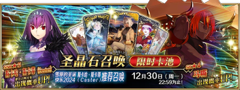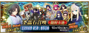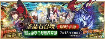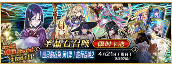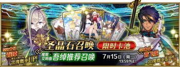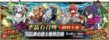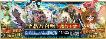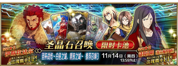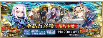 | 国服已结束卡池 | 开始时间 ~ 结束时间 | 推荐召唤从者 (期间限定从者带有红色边框;剧情限定从者带有蓝色边框) |