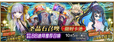 | 推荐召唤★5从者 | 0.8% | 推荐召唤★4从者 | 各1.4% | 推荐召唤★3从者 | ∅ | ||||