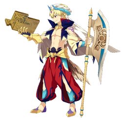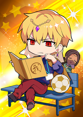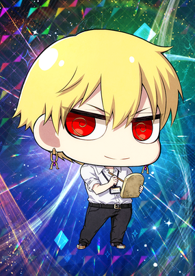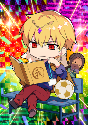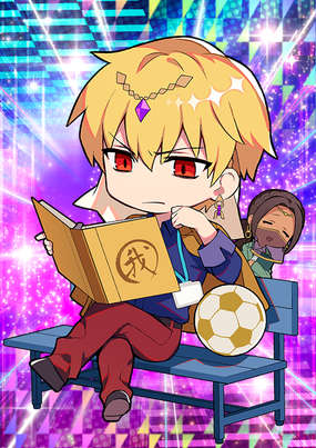 吉尔伽美什(Caster)装备,且自身在场时,己方全体的宝具威力提升20%