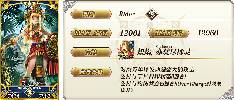 ※以上的「★5(SSR)魁札尔·科亚特尔(Rider)」的立绘为灵基再临第2阶段。