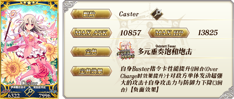 | 自身的Arts指令卡性能提升8%&宝具威力提升15% + 【『复刻版:魔法少女纪行 ~Prisma·Codes~』活动期间限定】 | |||