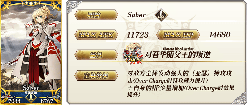 ※以上的「★5(SSR)莫德雷德(Saber)」的圣肖像为灵基再临第2阶段。