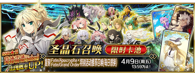 限时卡池「复刻 Fate/Apocrypha×Fate/Grand Order特别活动推荐召唤(每日替换)」开启!