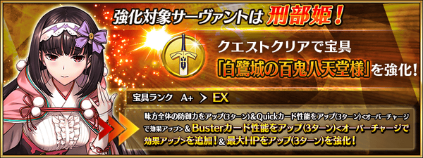 新追加强化刑部姬能力的特别关卡「从者强化任务」。