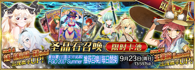 「复刻 夏日!海洋!开拓啦! FGO 2017 Summer 推荐召唤1(每日替换)」卡池限时开启!