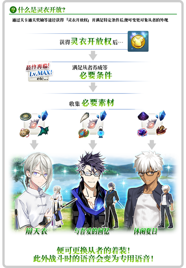 ※「灵衣开放」仅会变更从者的外观,职阶和数值等内容不会发生变化。