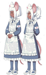 1号:您感觉如何,这是将第一套服装重新剪裁而成的护士服。遗憾的是,我们没有任何医疗相关的知识…