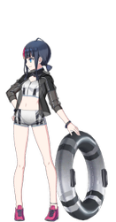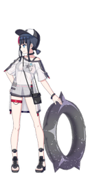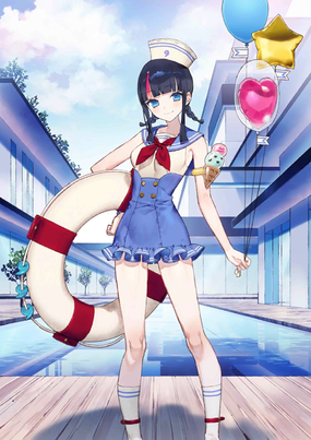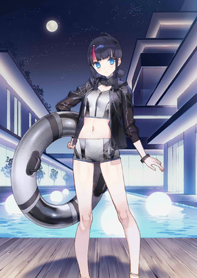 ……嗯。虽然这也是泳装……但从另一个角度来说,也是我平时的穿着。是在临海都市“秋叶原”当“死神”时的打扮吧。虽说令我想起了很多稍微有些气馁,不过,也的确像我的风格吧。