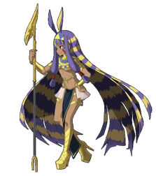 从者,Caster。天空神荷鲁斯的化身,尼托克丽丝,应召唤而来。我虽为一名法老,但我过于不成熟。因此,这次就特别承认你是「同盟」对象好啦。……但在此之前,我要把该说的说出口。垂下头来,这是大不敬!