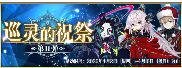 - 「巡灵的祝祭 第11弹」相关从者限时全关卡牵绊获取量提升20%