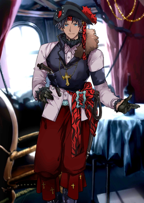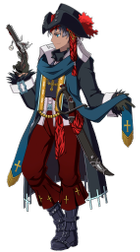 おしゃれなイケメン大海賊。温和で紳士的だがあくまで海賊なので油断はできない。特殊な性嗜好の点でも危険だ。決して前髪は下ろしてはいけない。