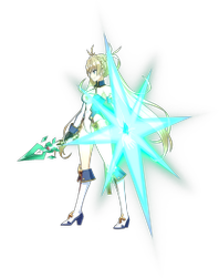 尽管我被作为Lancer召唤,但其实……我没有枪的宝具。对不起!我的宝具是这面盾。对。是聚集光的魔之盾。这曾经是邪恶魔术师装备于身上的聚集暗之盾……但在打倒了那家伙之后,得到了梅林大人的净化!