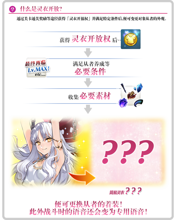※「灵衣开放」仅会变更从者的外观,职阶和数值等内容不会发生变化。