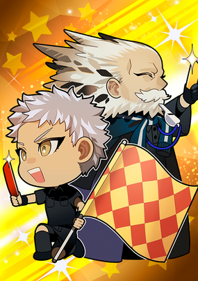 啊啊,果然见到了啊。对于继业者战争一事吾不会做任何辩解。身为胜利者的吾还是必须承担起责任的。……但是,在那之前,能否说说你的旅途呢,自称Faker的从者啊。(持有赫费斯提翁) | |