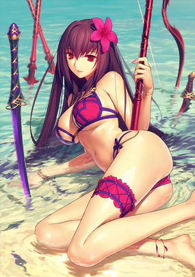 只能说有些亢奋过度的斯卡哈泳装打扮。