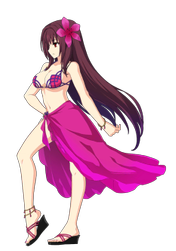 うかれているとしか言いようがない、スカサハの水着のすがた。色々と開放的になっているようなので、甘えるなら今しかない。
