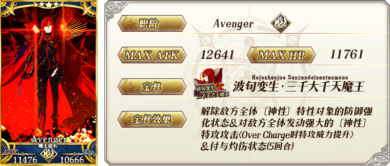 ※在进入灵基再临第3阶段后,「★5(SSR)织田信长」的名字将变为「★5(SSR)魔王信长」。
