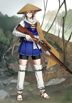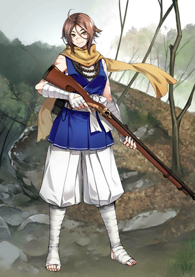 哎哟,贫僧被叫来了吗……杉谷善住坊,僧兵兼狙击手。哎,问我为什么不是男人?因为我变成女人了啦,都是果心居士那家伙的错!反正不影响狙击,倒也没什么关系。总之,请多关照啦!