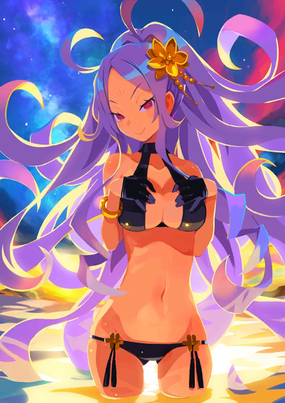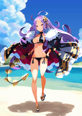 原本就美的存在换上了泳装之后,就算不去注意也会不断大量吸引他人视线的痛苦……唔~,梅芙和虞美人她们多半会和朕有同感吧?过于美丽还真是个烦恼呢。(持有女王梅芙(Saber)、虞美人(Lancer)) | |