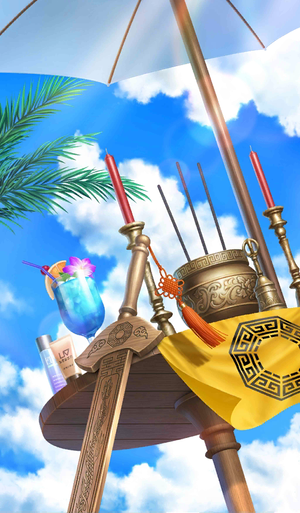 朕终于理解你的心情了,玄奘三藏。所谓的泳装倒是意外便于行动呢。如果注重活动能力的话,那也能理解为何平时也这么打扮了。……唔? 你那身其实并不是泳装?是……这样吗……?(持有玄奘三藏) | |