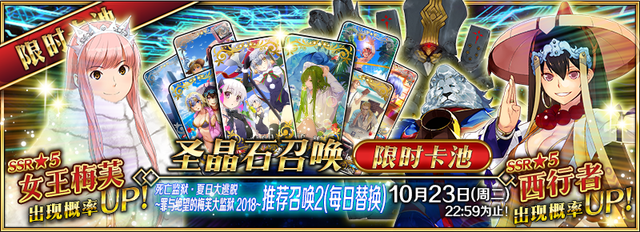 将通过每日替换的方式对活动中大放异彩的从者「★5(SSR)女王梅芙」「★5(SSR)玄奘三藏」进行推荐召唤!