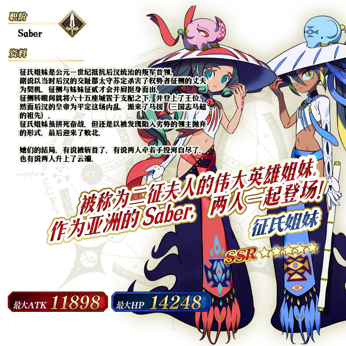 ※以上的「★5(SSR)征氏姐妹」的立绘为灵基再临第2阶段。