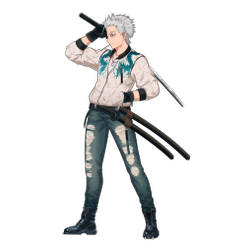 这不是冲田吗!看上去挺精神……不对,我们已经变成从者了呢。不过我还是很高兴能再次见到你。什么? 久违地过个招?不错,让我们不要放水全力以赴地干一场吧!(持有冲田总司)