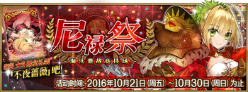 第一特异点 邪龙百年战争 奥尔良 | 2016年9月29日(周四) 11:00 ~ 无明确结束时间 |
