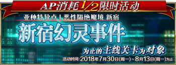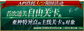 首次通关自由关卡&亚种特异点的主线关卡AP消耗减半 |